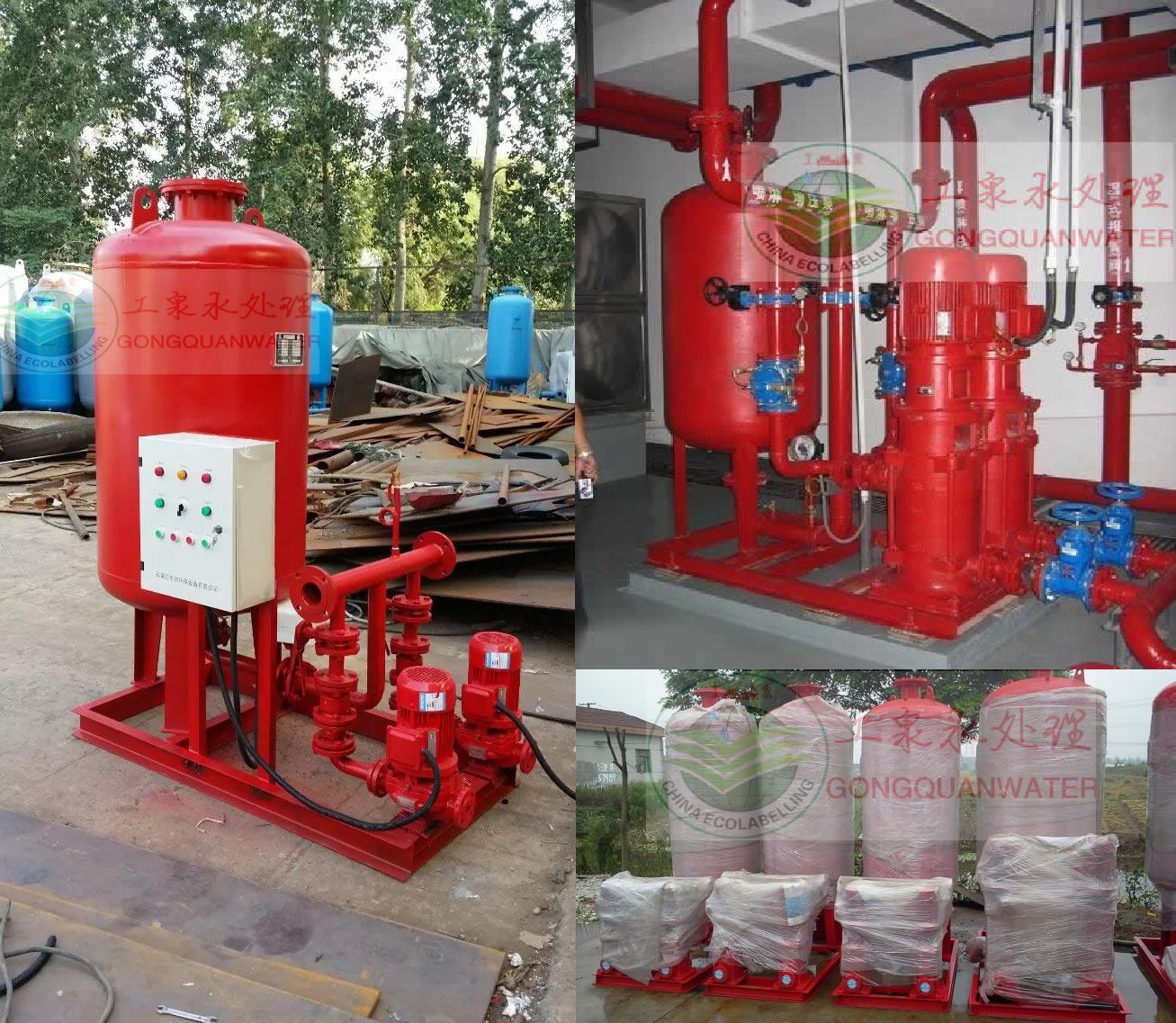 消防供水設(shè)備是由隔膜式氣壓罐、水泵、遠(yuǎn)傳壓力表、閥門、管道及電控柜等組成。是消防給水系統(tǒng)理想的消防增壓穩(wěn)壓設(shè)備,它能使消防管道系統(tǒng)始終保持不利點(diǎn)消火栓及自動(dòng)噴水所需的壓力,而且能使壓氣罐始終貯有所要求壓力的消防水量,一旦發(fā)生火災(zāi),確保消火栓等消防設(shè)備可以立即投入撲救。